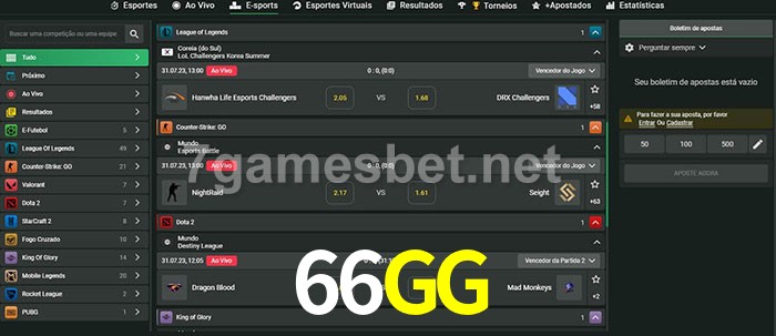 A aposta 66GG oferece aos jogadores a experiência mais conveniente de apostas em eSports!